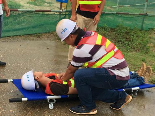 針對(duì)最近南昌暴雨天氣,南昌城投集團(tuán)公司沿江南大道南延項(xiàng)目部近日舉行了防洪防汛及觸電事故應(yīng)急安全演練,進(jìn)一步強(qiáng)化了應(yīng)急預(yù)案保障措施的落實(shí),提高了項(xiàng)目部應(yīng)對(duì)安全生產(chǎn)事故和突發(fā)事件的能力,教育員工如何正確、迅速處理突發(fā)事件。在安全演練中項(xiàng)目經(jīng)理負(fù)責(zé)統(tǒng)一指揮調(diào)度、分級(jí)分部門負(fù)責(zé),項(xiàng)目部經(jīng)理現(xiàn)場(chǎng)宣讀演練程序后,全體人員統(tǒng)一穿著工作服,在富山大道鋼筋棚和標(biāo)尾過水箱涵開展了觸電、防洪安全演練。