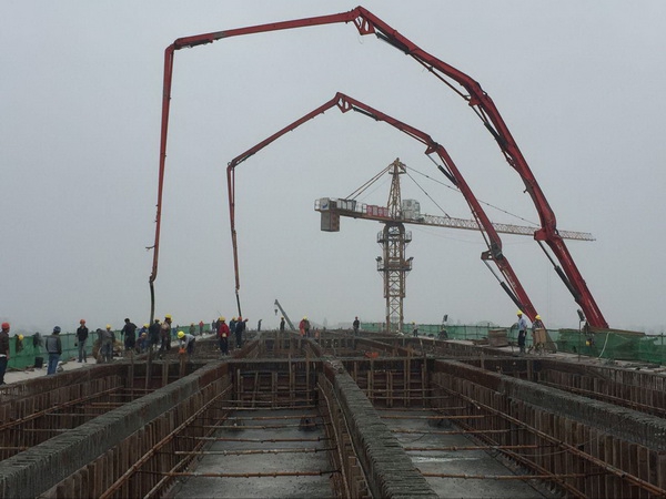 4月10日08時18分,伴隨著機械及禮炮轟鳴聲,昌東大道南延工程部雄溪河大橋連續(xù)梁首次澆筑混凝土準時開盤,本次澆筑總方量為1806方,澆筑橋梁跨度為190米,歷時29個小時,于4月11日13時08分澆筑圓滿完成!